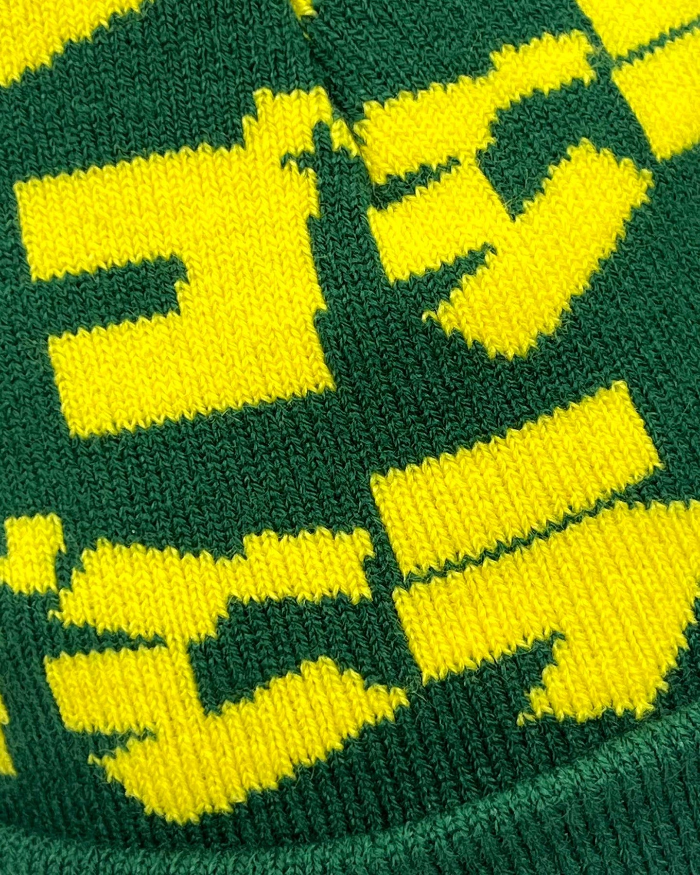 • Full intarsia knit artwork across the upper front crown, seamlessly into the front cuff
