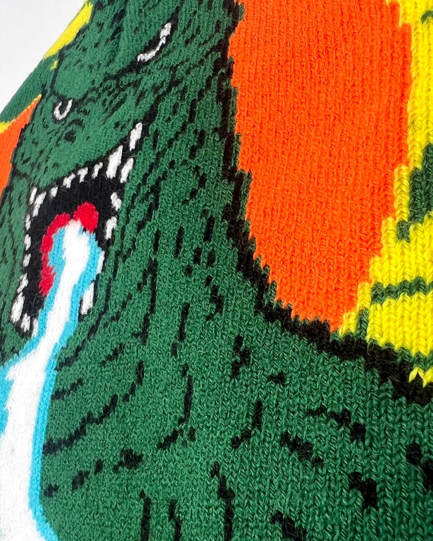 • All-over intarsia knit Kanji Godzilla logo across the crown main