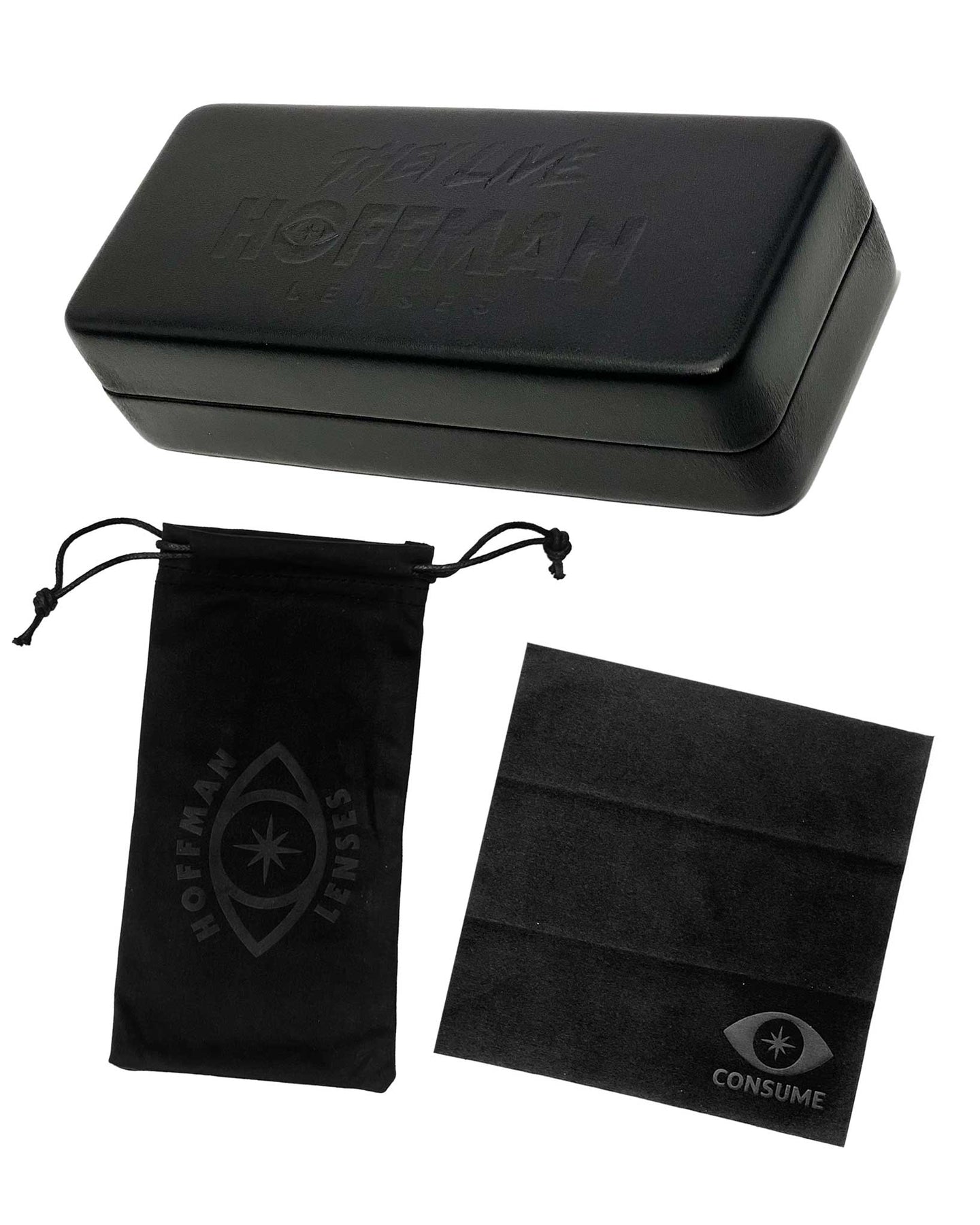 Each pair includes a soft Hoffman Lenses microfiber pouch with the custom eye logo. It keeps your sunglasses protected when they’re not revealing the hidden messages around you, and it doubles as a cleaning cloth so the truth always stays crystal clear.